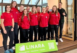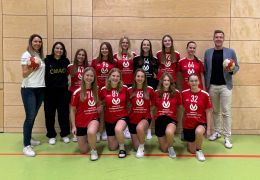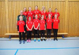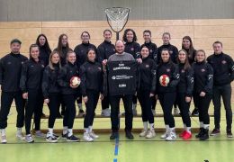 Auf dem Bild: Die Jugend 19 sowie ihre Trainerinnen bedanken sich bei Frau Kinberger